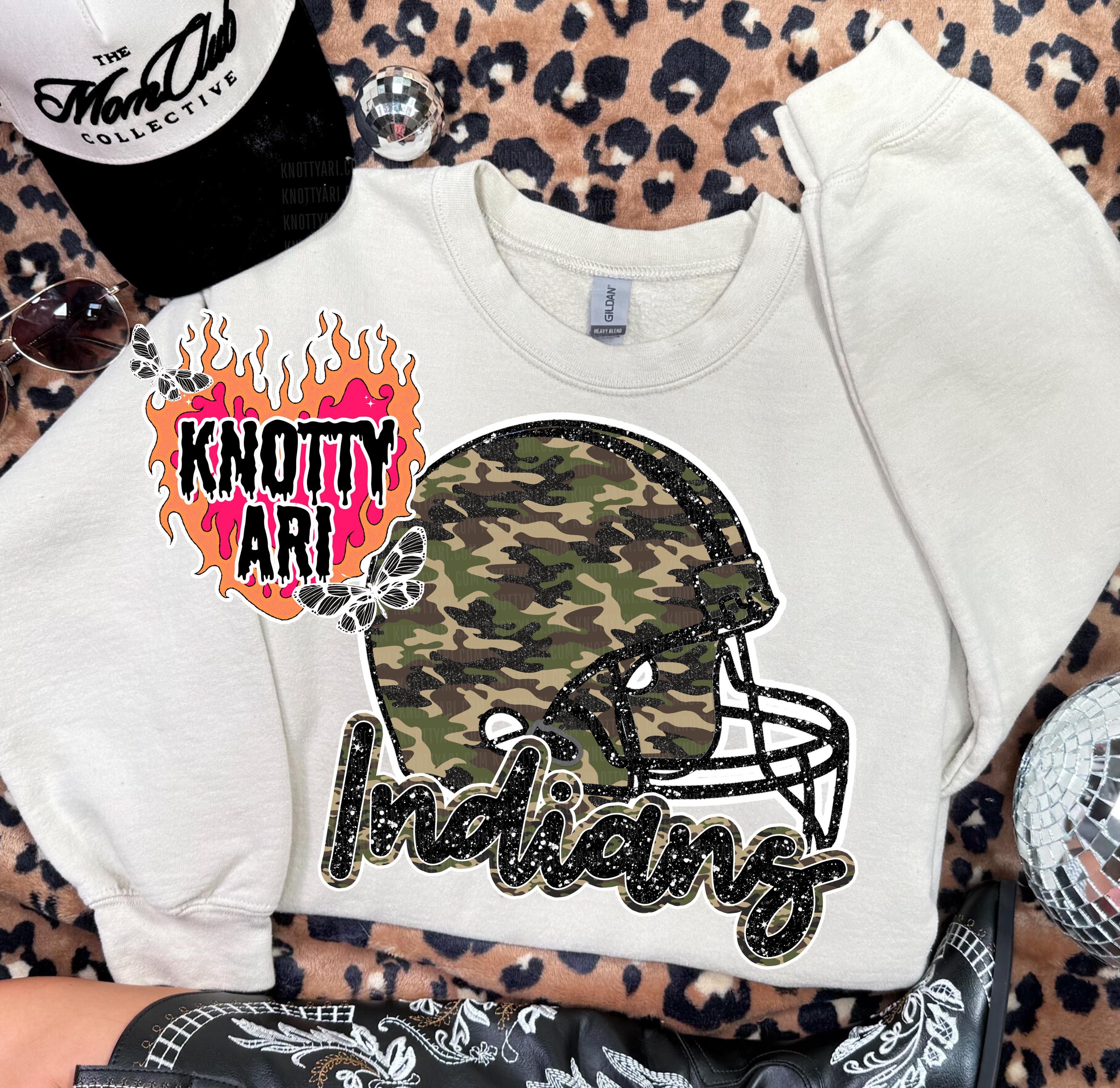 Cute Camo Glitter Football file - Mascot-INDIAN NATION PNG - School Spirit -