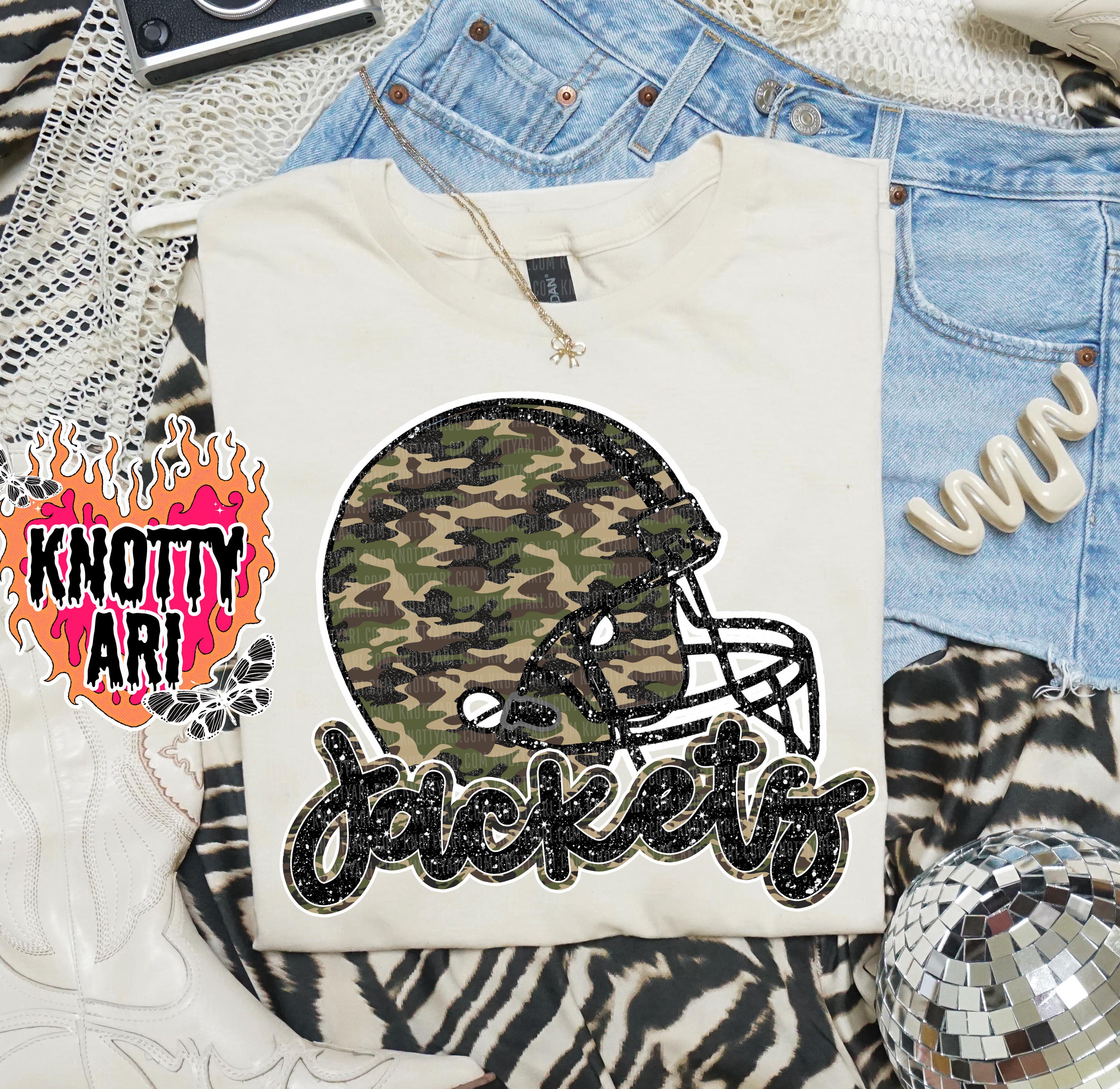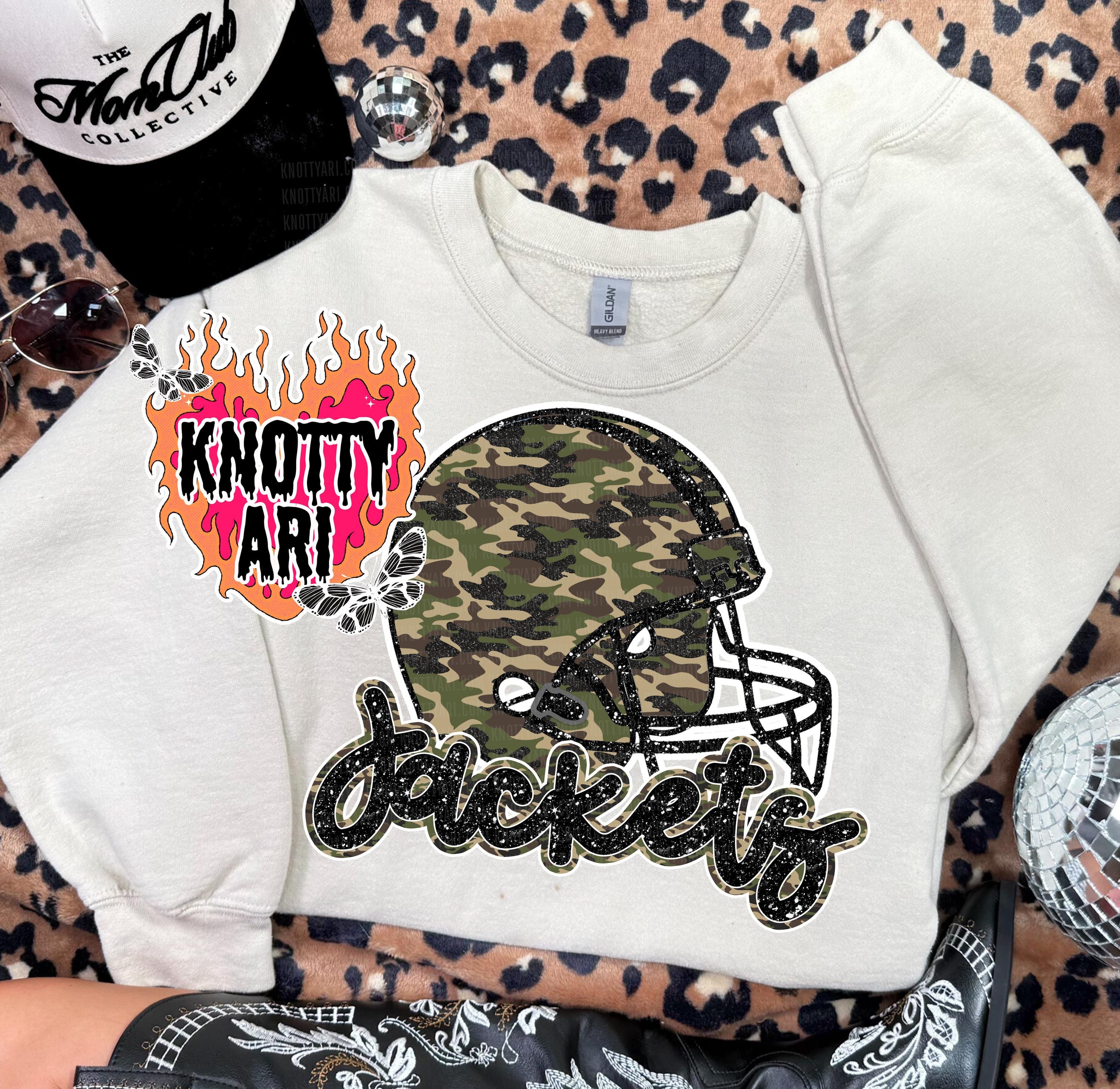 Cute Camo Glitter- PNG File - JACKETS - Mascots - Preppy Retro Designs, Game day shirt design, DTF Ready, Sublimation Ready, Football Mascot