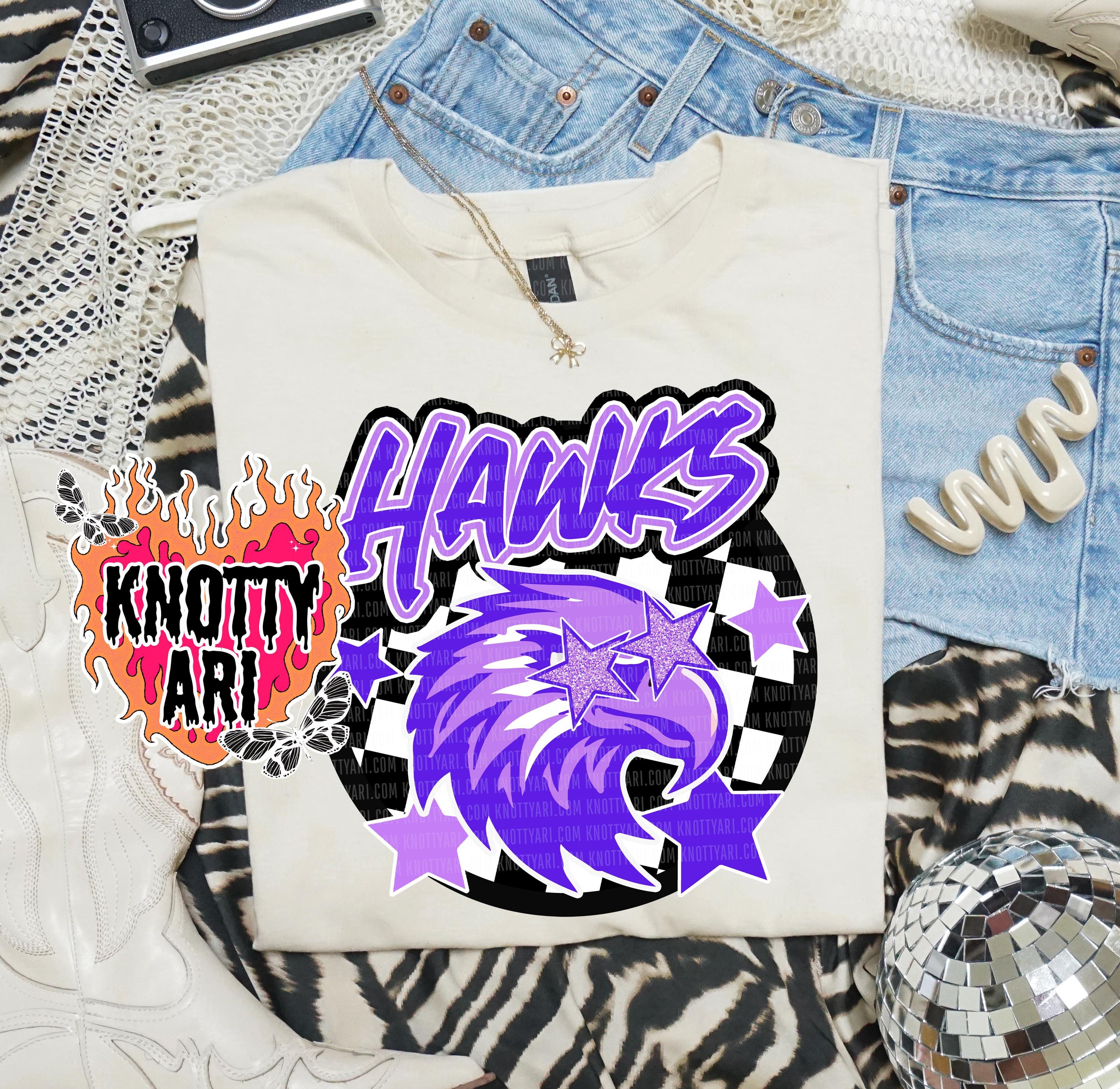 Retro Pink Preppy- Mascot-HAWKS PNG - School Spirit Purple