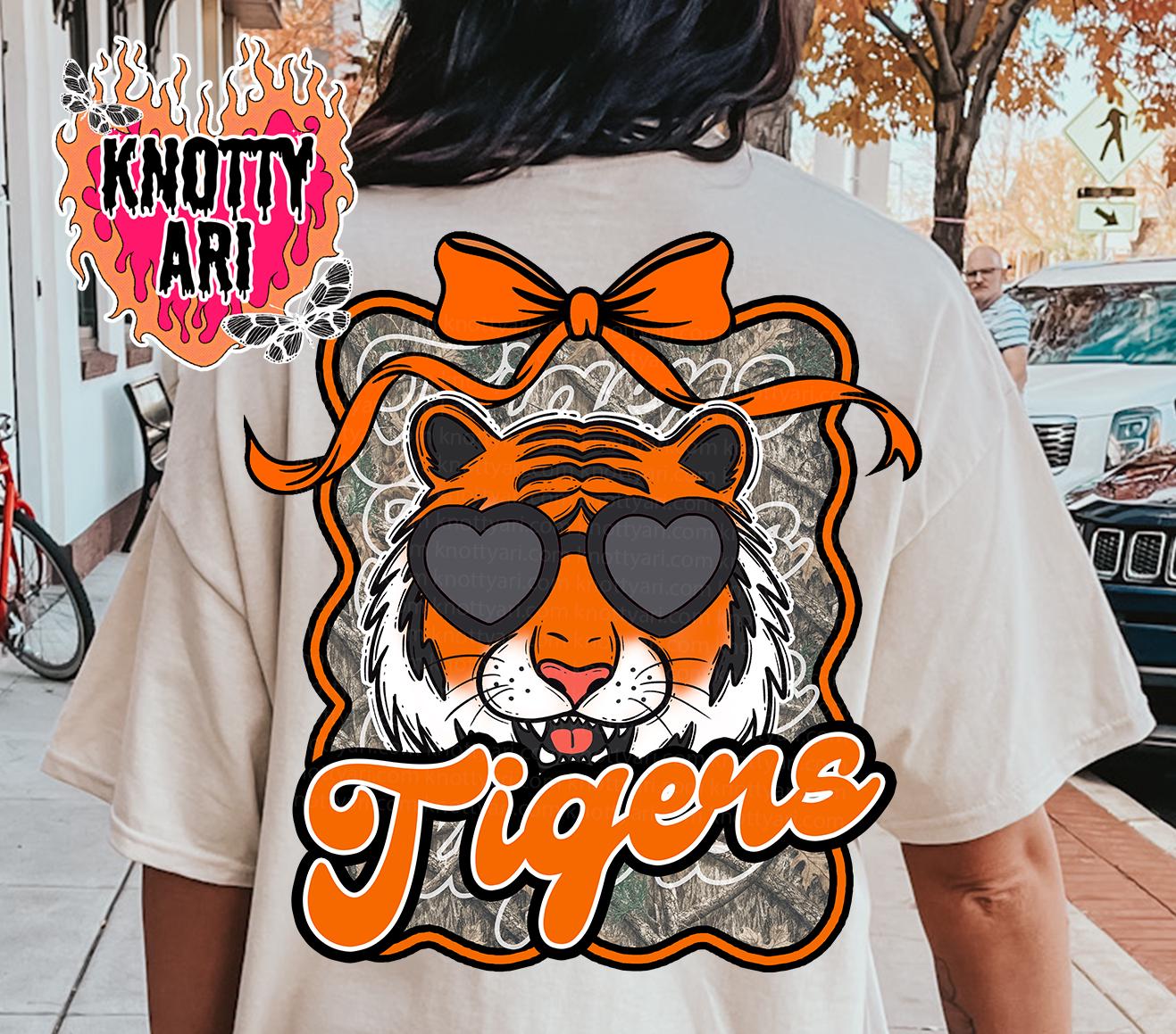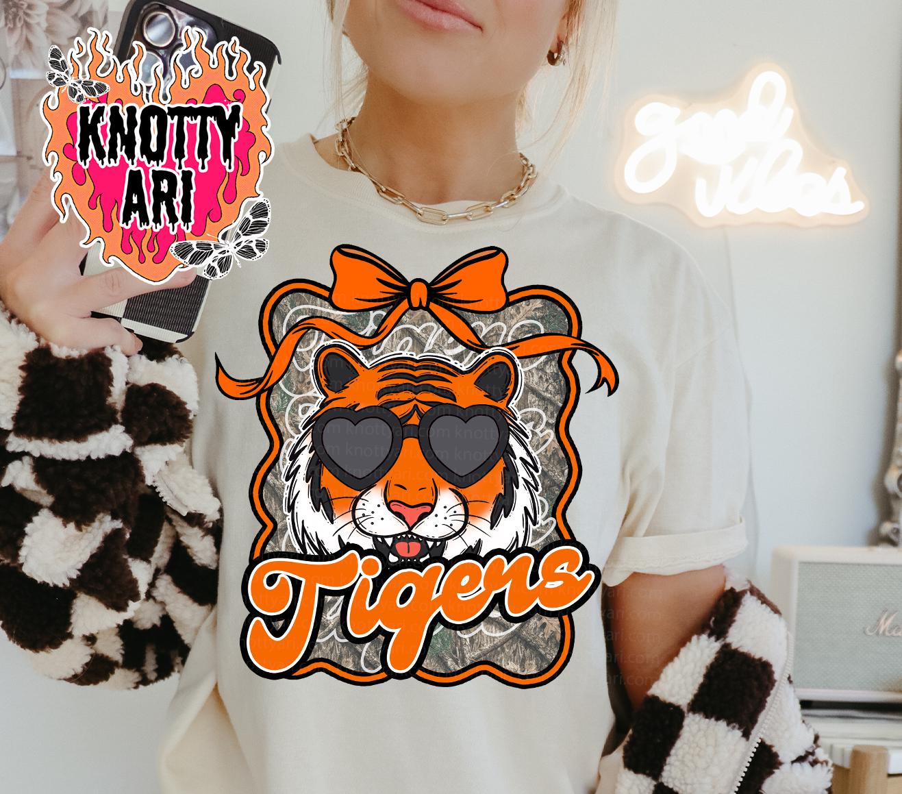 Tigers Coquette Camo PNG | Orange Bow Team Spirit Sublimation | Game Day Graphic Design