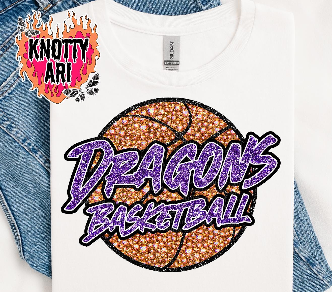 Glitter Rhinestone Basketball Mascot-Dragons PNG - School Spirit