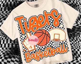 Retro Preppy Basketball Mascot-TIGERS- PNG School Spirit - Orange